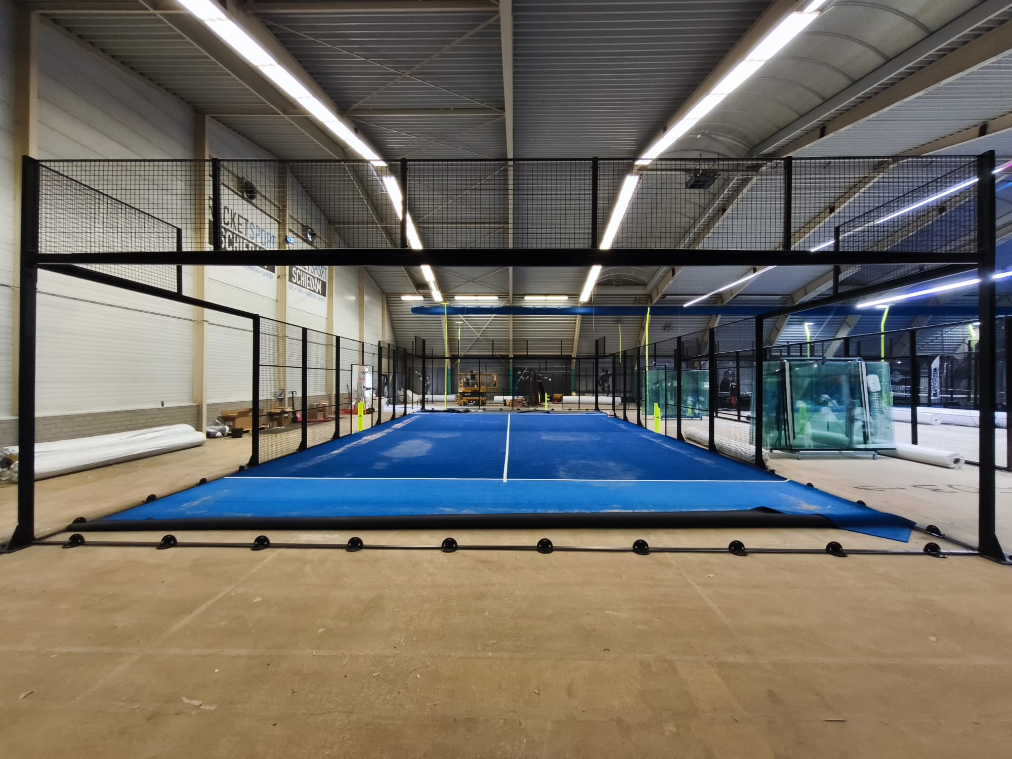 Bij Racket Sport Schiedam plaatsen we een nieuwe Centre Court en één nieuwe single court. Daarnaast schuiven we een huidige padelbaan een meter op. Ook hebben we lijnverlichting geplaatst.