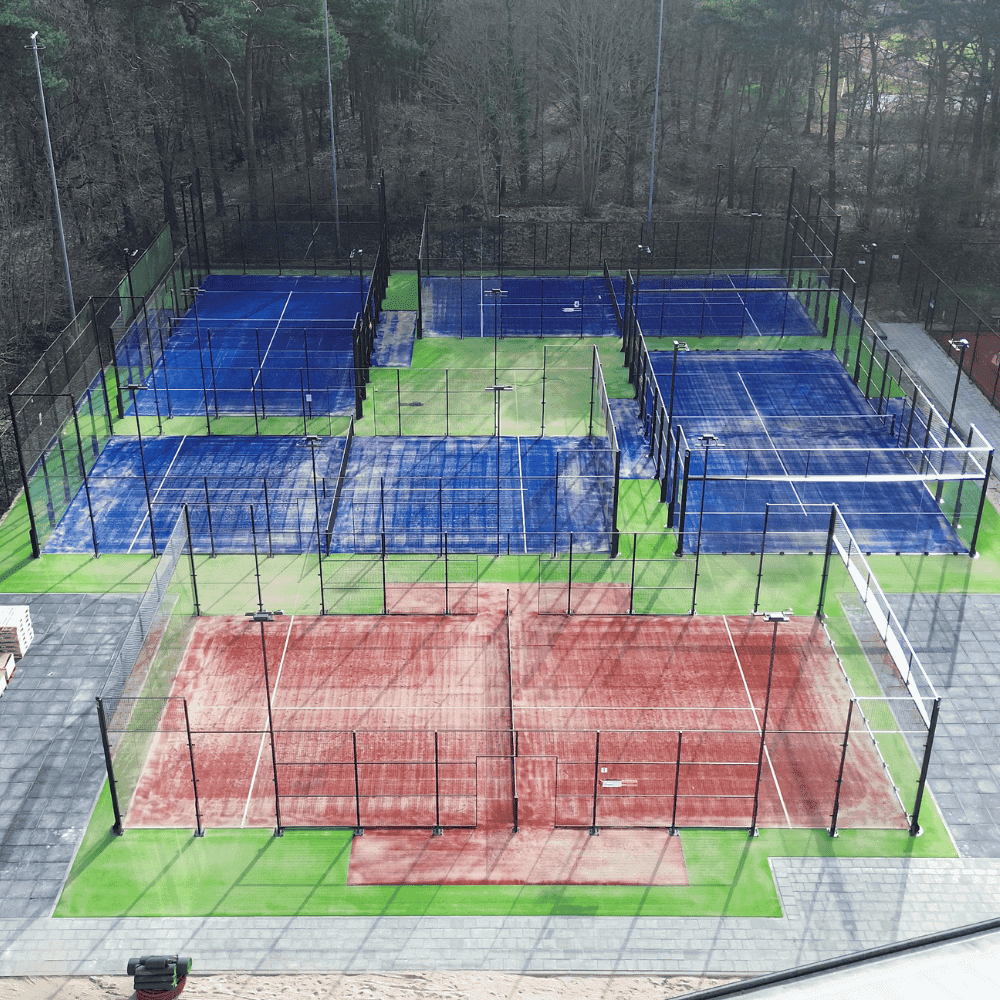 We are proud to announce that we have been commissioned by TV Strokel four have been able to build new padel courts. We have also one Previously built padel court moved to the other four padel courts. The relocated padel court features a beautiful terracotta colourful turf.