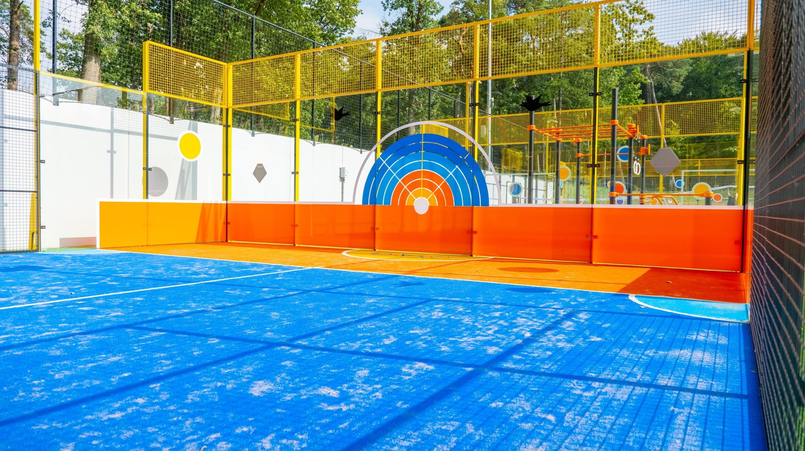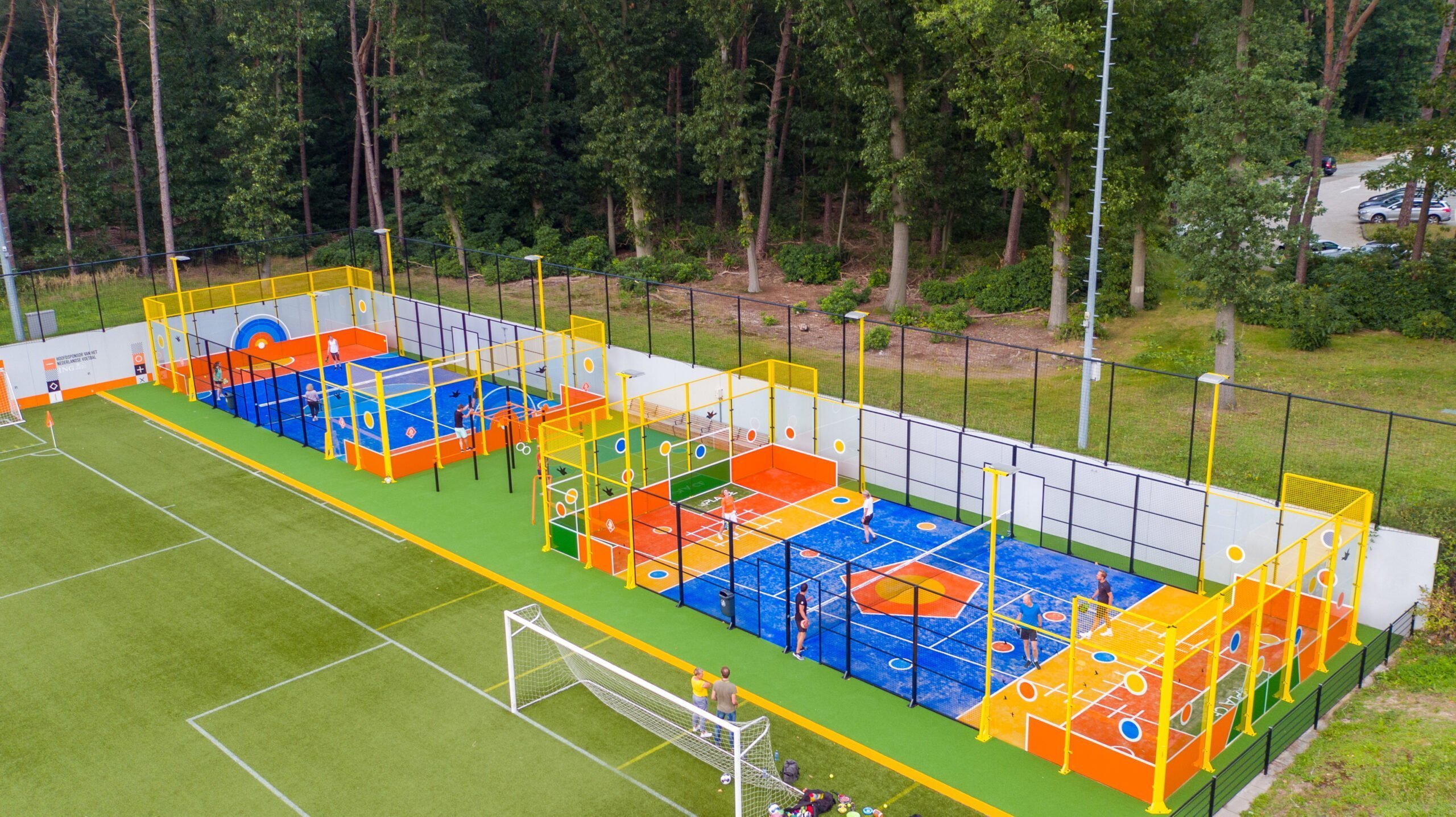 In eerste instantie speciaal voor het EK2021 werden twee PLAYCE padelbanen gerealiseerd om de voetballers te kunnen voorzien van padel bij de Campus KNVB en Zeist. Een prachtig concept wat we eind 2020 gezamenlijk met ASM zijn opgestart. Zo kunnen er verschillende spelvormen gespeeld worden als voetvolley en badminton aangezien het net verstelbaar is. In de velden zijn verschillende vormen te zien om veelzijdig te kunnen bewegen. Daarnaast zijn deze padelbanen voorzien van een reserveringssysteem die een code geeft om toegang te krijgen tot de padelbaan.