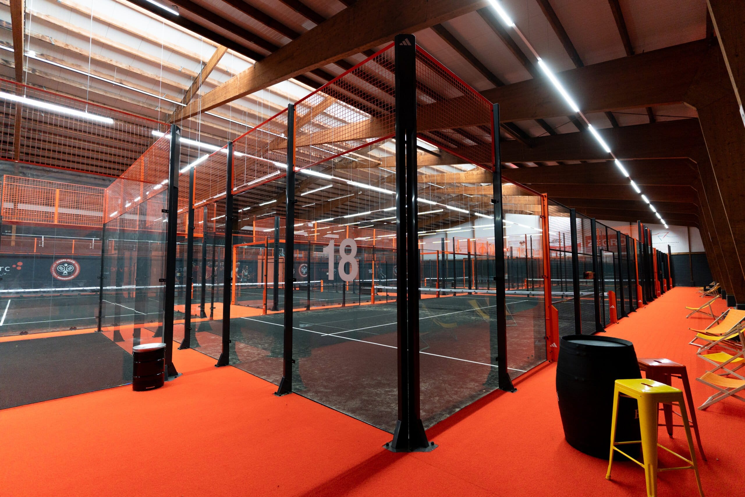 Eerder dit jaar hebben we 4 prachtige oranje/zwarte in een kas gemaakt bij Padelclub Ridderkerk. Aantal maanden later mogen we weer oranje/zwarte padelbanen in een bestaande hal plaatsen, ditmaal 7 normale padelbanen én een single court. We hebben hier ook lijn verlichting geplaatst.